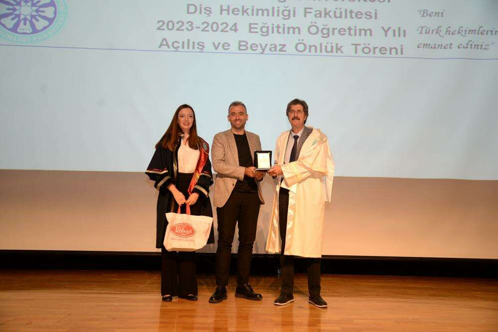 Öğrencilere de seslenen Dekan Pampu; “Diş hekimliği mesleğini tercih ettiniz. İnanıyorum ki 5 yıllık eğitiminizin ardından sizleri bugünkü coşkuyla buradan uğurlayacağız. Dürüst, insan haklarına saygılı, etik değerlere bağlı ve mesleki manada donanımlı hekimler olacaksınız. Bu anlamda hocalarınız olarak her zaman yanınızda olacağız. Ailelerimize de seslenmek istiyorum. Gözünüz arkada kalmasın. Artık onlar da bizim birer evladımız. Yeni eğitim-öğretim dönemi hepimize hayırlı olsun” diye konuştu.