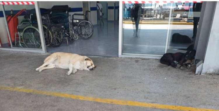 Hastanenin acil servis girişi, köpeklerin meskeni haline geldi.