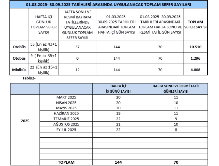 Sınırlı Sorumlu Birkoop Karayolu Yolcu Taşıma Kooperatifi, 1 Mart ile 30 Eylül 2025 tarihleri arasında BUÜ için taşıma hizmeti verecek.
