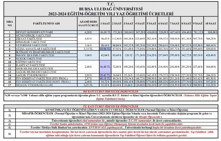 Bursa Uludağ Üniversitesi(BUÜ), 2023-2024 Eğitim-Öğretim yılı yaz okulunda açılacak dersleri duyurdu. Ayrıca yaz okulunda alınacak derslerin ücreti de belli oldu. İşte detaylar...