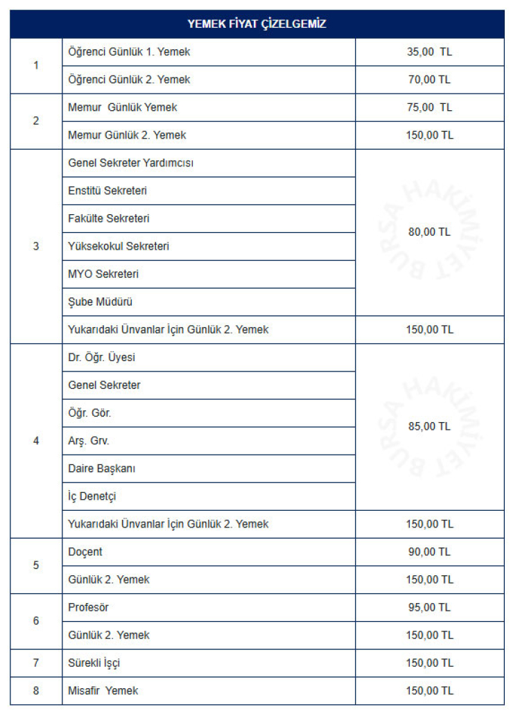 Üniversiteler arasında öğencilere en ucuz yemek hizmeti sunan Bursa Uludağ Üniversitesi fiyatlarını güncelledi.