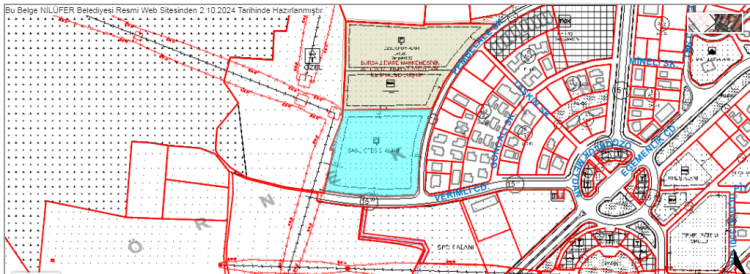 Belediye'den yapılan açıklamada, "3194 Sayılı İmar Kanununun 18. Madde Uygulamasına tabi onaylanan, Belediye Encümeninin 11.09.2024 tarih ve 764 sayılı kararı ile onaylanan Özlüce Mahallesi 4446 ada 2 parsele ait düzenleme haritası, hesap, dağıtım cetvelleri Encümenin 11.09.2024 gün ve 2024/764 sayılı kararı ile onaylanmış olup düzenleme Nilüfer Belediyesi Harita Bürosu İlan Panosunda 12.09.2024 tarihinden itibaren 1 ay süreyle askıya çıkarılmıştır. İlan olunur." ifadeleri kullanıldı.