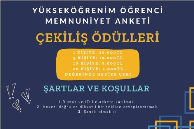 Çekilişin sonunda ödül kazanmasanız bile, yanıtlarınız ve görüşleriniz bizim için büyük önem taşımaktadır. Anketin sonunda, yükseköğrenim deneyiminiz hakkında paylaşmak istediğiniz düşünceleri, sorunlu gördüğünüz alanları ya da ankete dair fikirlerinizi yazabileceğiniz iki açık uçlu soru bulunmaktadır. Sizlerin geri bildirimleri, eğitim ve öğretim ortamının gelişimi için kritik bir rol oynamaktadır.