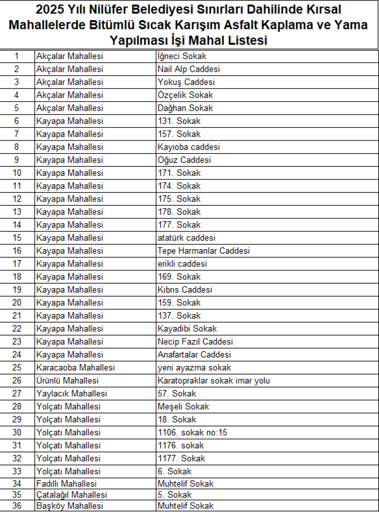 Nilüfer Belediyesi Destek Hizmetler Müdürlüğü, ilçe sınırları içerisindeki 9 mahallede asfalt dökümü yaptırmak için ihale açtı.