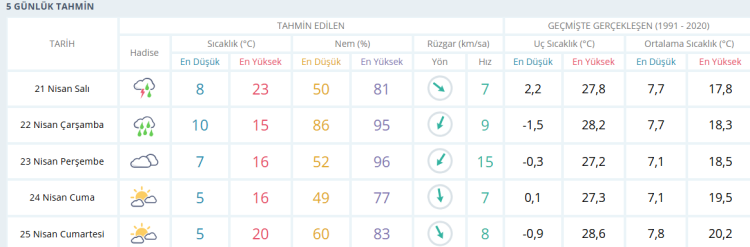 İŞTE BURSA İÇİN 5 GÜNLÜK HAVA DURUMU TAHMİNİ (21 NİSAN 2026)