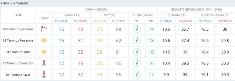 İŞTE BURSA İÇİN 5 GÜNLÜK HAVA DURUMU TAHMİNİ (2 TEMMUZ 2025)