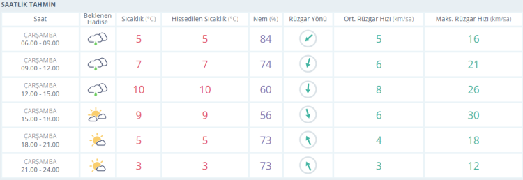 Akşamsaatlerinde termometreler 5 derece seviyelerinde ve parçalı bulutlu gösterirken gece saatlerinde ise 3 derece seviyelerinde ölçülüyor.