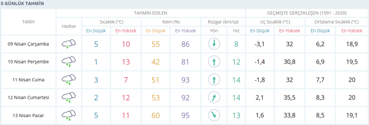İŞTE BURSA İÇİN 5 GÜNLÜK HAVA DURUMU TAHMİNİ (9 NİSAN 2025)