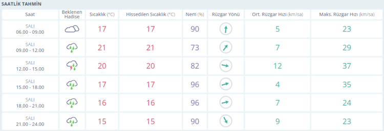 İŞTE BURSA İÇİN SAATLİK HAVA DURUMU TAHMİNİ (28 EKİM 2025)