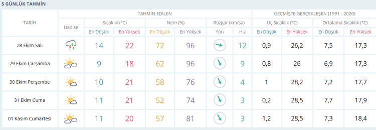 İŞTE BURSA İÇİN 5 GÜNLÜK HAVA DURUMU TAHMİNİ (28 EKİM 2025)