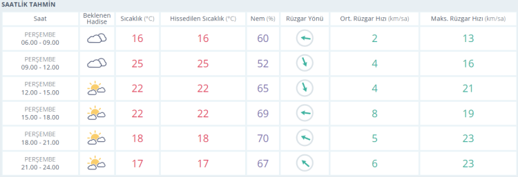Akşam saatlerine doğru ise termometreler 22 derece ve parçalı bulutlu gösteriyor.