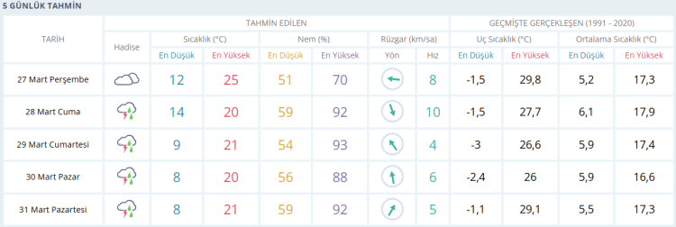 İŞTE BURSA İÇİN 5 GÜNLÜK HAVA DURUMU TAHMİNİ (27 MART 2025)