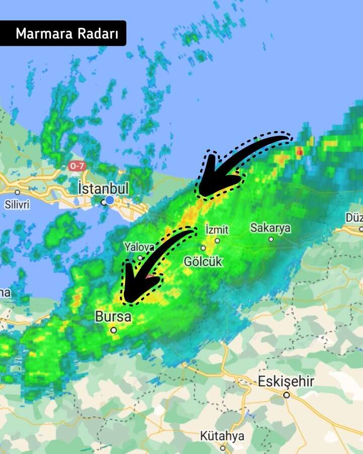 "Karadeniz, harika bir şekilde yağış desteğine devam ediyor. Radar görüntüsüne bakın, Karadeniz'den Bursa'ya ve Balıkesir'e kadar uzanan bir hat var. Şakır şakır yağıyor. Ayrıca şimşek aktivitesi de var..."