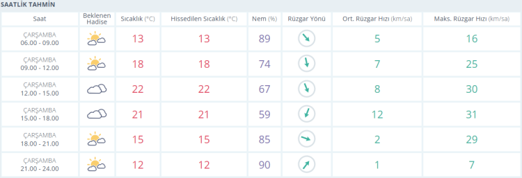 Akşamsaatlerinde termometreler 15 derece seviyelerinde veparçalı bulutlugösterirkengece saatlerinde ise 12 derece seviyelerinde ölçülüyor.
