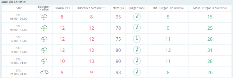 Tahminlere göre kentte hava sıcaklığının gün içinde 12 dereceye kadar yükselmesi, akşam saatlerinde 10 dereceye, gece saatlerinde ise 9 derece civarına gerilemesi öngörülüyor.