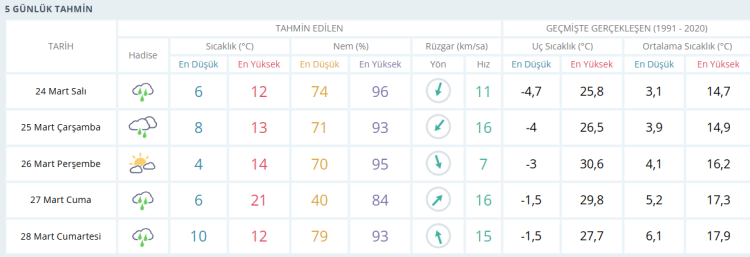 İŞTE BURSA İÇİN 5 GÜNLÜK HAVA DURUMU TAHMİNİ (24 MART 2026)