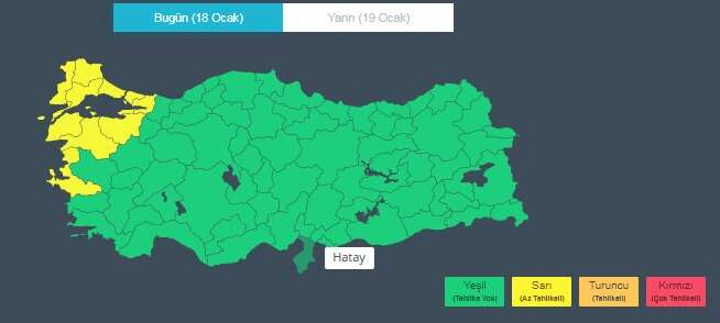 Bu akşam saat 20:00'den itibaren etkili olacak fırtınanın 19 Ocak Cuma günü sabah saat 09:00'a kadar süreceği bildirildi.