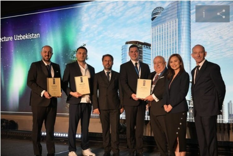 Osman Can Sözüneri, Ayber Yeşilyurt ve Sözüneri Mimarlık Özbekistan Temsilcisi Ahmet Keskin ödül töreninde yer aldı.