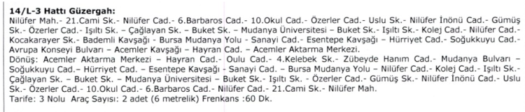 BURULAŞ, 14/L-3 adlı yeni otobüs hattı kurulması için Bursa Büyükşehir Belediyesi Ulaşım Koordinasyon Merkezi'ne (UKOME) başvuru yaptı.