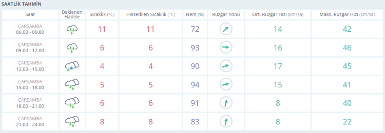 Gün içinde hava sıcaklığının öğle saatlerinde 4 dereceye kadar düşeceği, akşam saatlerinde 5 dereceye yükseleceği, gece saatlerinde ise 8 dereceye kadar çıkacağı tahmin ediliyor.