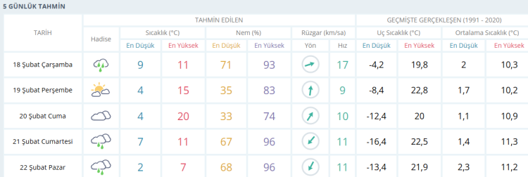 İŞTE BURSA İÇİN 5 GÜNLÜK HAVA DURUMU TAHMİNİ (18 ŞUBAT 2025)