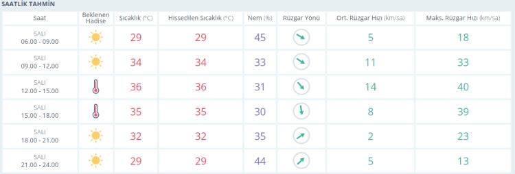 Akşam 32 dereceye düşmesi beklenen hava sıcaklığı, gece saatlerinde ise 29 derece olacak.