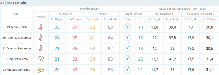İŞTE BURSA İÇİN 5 GÜNLÜK HAVA DURUMU TAHMİNİ (29 TEMMUZ 2025)