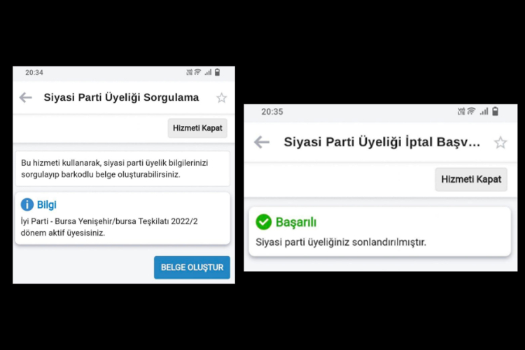 Zanbak ayrıca parti üyeliğinden istifa ettiğine dair E-Devlet hesabından aldığı görüntüleri de yayımladı.