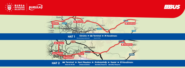 Yeni sefer hatları, Görükle-Terminal-Yenişehir Havalimanı ile Terminal-Kent Meydanı-Arabayatağı-Kestel-Yenişehir Havalimanı şeklinde olacak. Uygulamada, BursaKart kullanımı geçerli olmayacak.