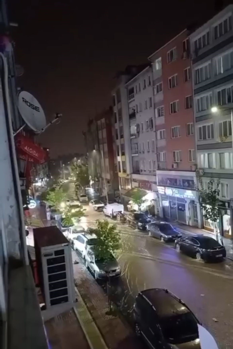 Yağmur yağışıyla birlikte şimşek çakması gecenin karanlığını aydınlattı.