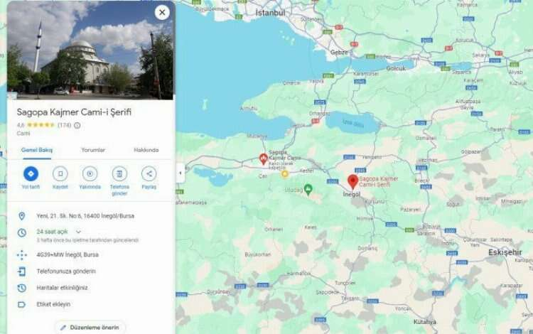 Bursa'nın İnegöl ilçesindeki bir caminin isminin Google Maps'te Sagopa Kajmer olarak değiştirilmesi sosyal medyada gündem oldu.