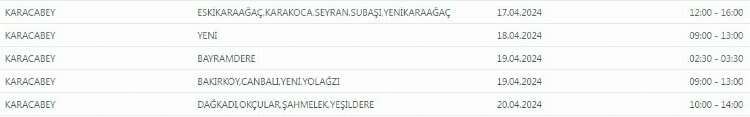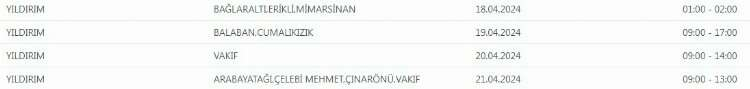 Bugünden itibaren başlayan kesintiler, 22 Nisan Pazartesi gününe kadar sürecek.