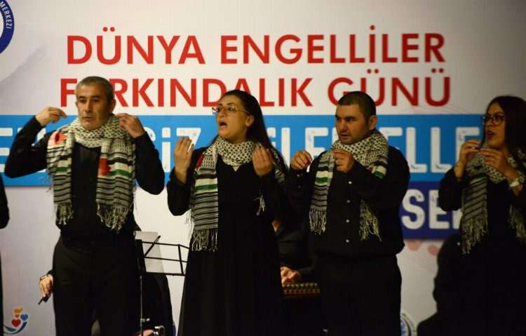 Barış Manço Kültür Merkezi’nde gerçekleştirilen programda, katılımcılara unutulmaz anlar yaşatan ‘özel’ bireyler Filistin'deki İsrail katliamını işaret diliyle aktarıp bir farkındalığa imza attı. Filistin için sessizliğin sesi olan Yıldırım’ın özel bireyleri işaret diliyle seslendirdikleri ezgilerle farkındalık oluşturup “Bizler de Filistin'in Yanındayız" mesajı verdi.Yıldırımlıların büyük ilgi gösterdiği programda hünerlerini sergileyen kursiyerler, sergiledikleri gösterilerle izleyenlerin beğenisini kazandı.