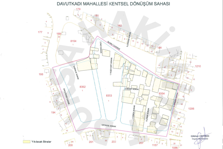 İhale kapsamında Davutkadı Mahallesi Kentsel Dönüşüm Sahasında yer alan binaların yıkımı planlanıyor.