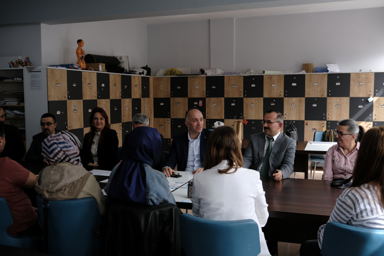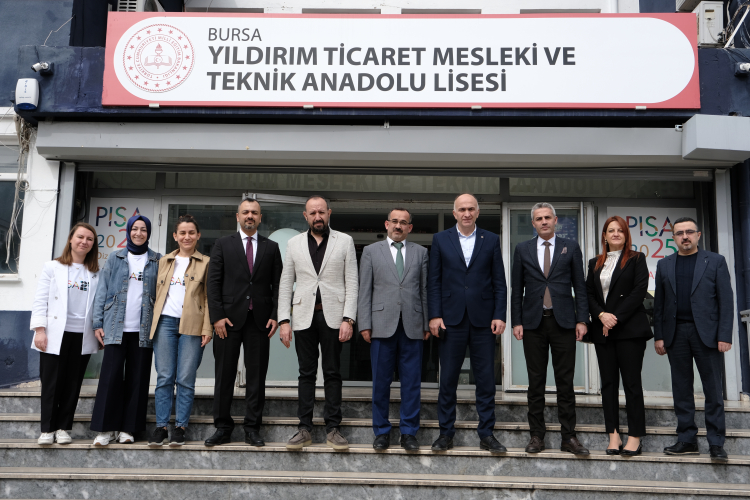 PİSA 2025 öncesi yarışamaya katılacak okulları ziyaret eden Milli Eğitim Bakanlığı Programlar ve Öğretim Materyalleri Daire Başkanı Bedri Ekşi, İl Milli Eğitim Müdür Yardımcısı Abdulkadir Çınar, Yıldırım İlçe Milli Eğitim Şube Müdürü Emel Dede ve ODM Müdürü Volkan Çınaroğlu Yıldırım Ticaret Mesleki ve Teknik Anadolu Lisesi ve Faik Çelik Kız Mesleki ve Teknik Anadolu Lisesi'ni gezerek çalışmalar hakkında bilgi aldı.