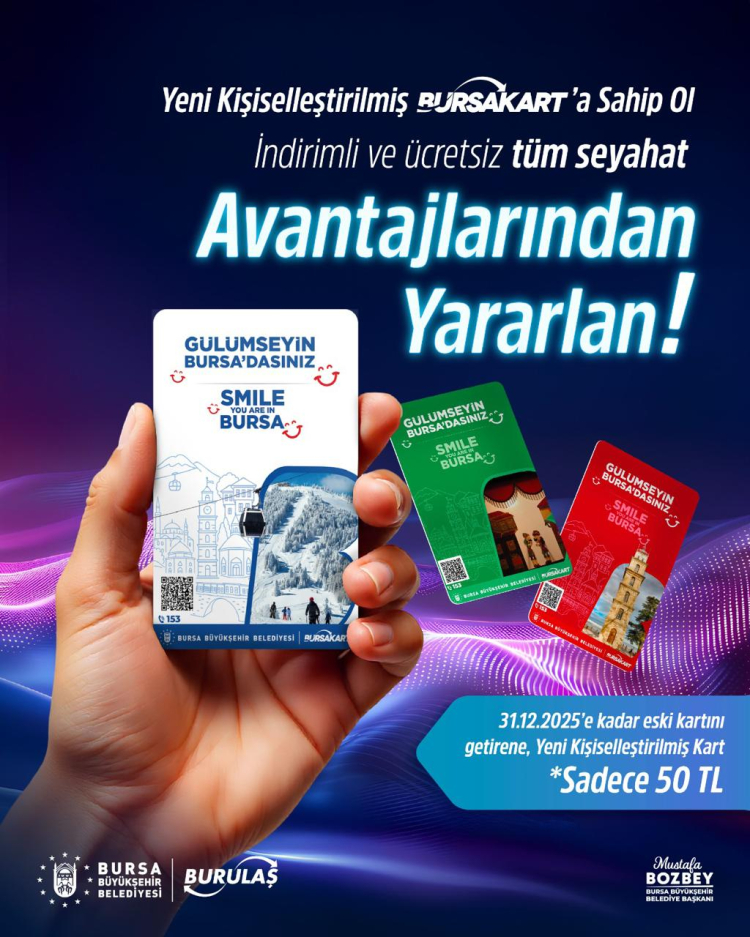 Eski BursaKart kullanıcıları, 1 Aralık 2025 tarihine kadar mevcut kartlarını getirerek sadece 50 TL karşılığında kişiselleştirilmiş yeni kartlarına sahip olabilecekler. Bu tarihten sonra ise kart ücreti artış gösterecek.