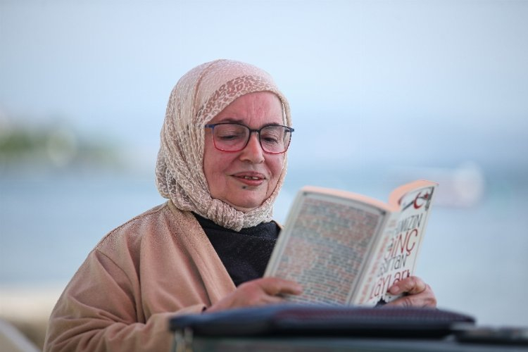 "Eşimin vefatından sonra ebru kursuna gittim. O ortam çok hoşuma gitti. Bir gün sahilde arkadaşımla otururken 'Okuma yazma biliyor musun?' diye sordu. Benim yaramı deşti. Bu kadar okuma hevesi olan bir insan olarak bunu duymak çok zoruma gitti. Kızım açık lise sınavlarının olduğunu söyledi. Başladım, şimdiye kadar güzel gidiyor. İnşallah böyle devam eder."