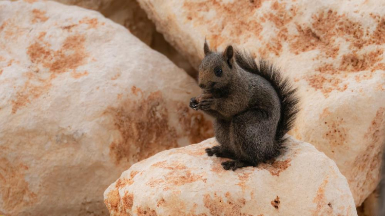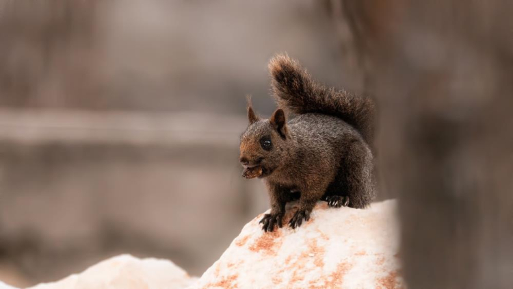 Bursalı doğa fotoğrafçısı Ömer Ahu tarafından Tunceli'nin Pülümür ilçesinde görüntülenen melanistik sincap, diğer sincaplarla kıyaslandığında koyu ve siyah kürküyle göze çarptı.