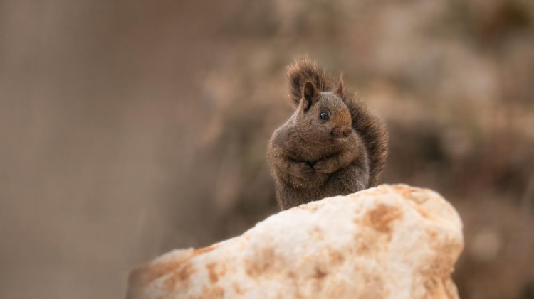 Tunceli'nin Pülümür ilçesinde melanistik olması sebebiyle çok nadir görülen bir sincap, Bursalı doğa fotoğrafçısı Ömer Ahu tarafından görüntülendi.
