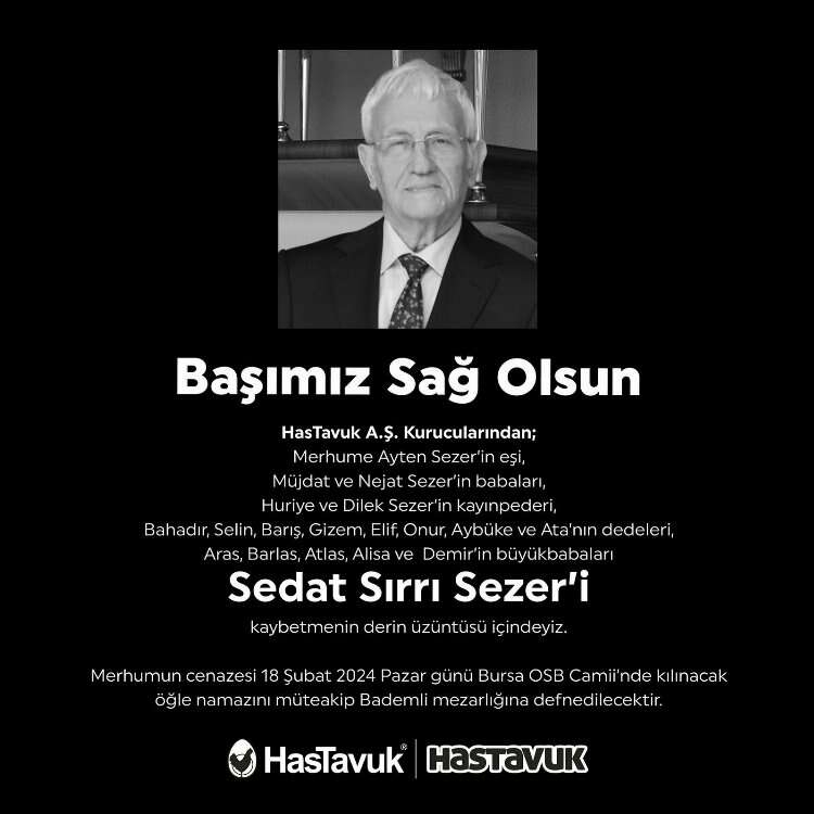 HasTavuk kurucularından Bursalı iş insanı Sedat Sırrı Sezer yaşamını yitirdi.
