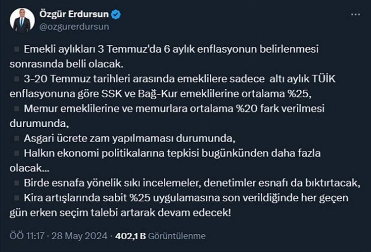 Memur emeklilerine ve memurlara ortalama yüzde 20 fark verilmesi durumunda, asgari ücrete zam yapılmaması durumunda, halkın ekonomi politikalarına tepkisi bugünkünden daha fazla olacak...