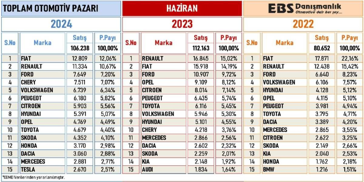 2024 yılında elektrikli otomobillere olan ilgi daha da artmaya başladı. Araç piyasasında değişiklikler göze çarparken Türkiye elektrikli otomobil piyasası da yeni rakamlarla herkesi şaşırttı. Farklı model ve seçeneklerle piyasada yer alan elektrikli otomobiller kıyasıya rekabetini sürdürürken Türkiye'nin yerli ve milli aracı satışlarda geriye düştü. Haziran ayında elektrikli otomobil pazarı büyük değişimleri beraberinde getirdi. Herkesin ilk tercihi olan TOGG, Haziran ayında yerini Tesla Model Y’e bıraktı.