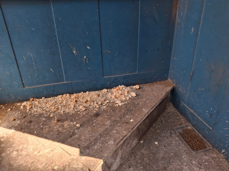 Kapısına zincir ve kilit vurulan binanın eşiği, sokak hayvanlarının beslenme alanı oldu.