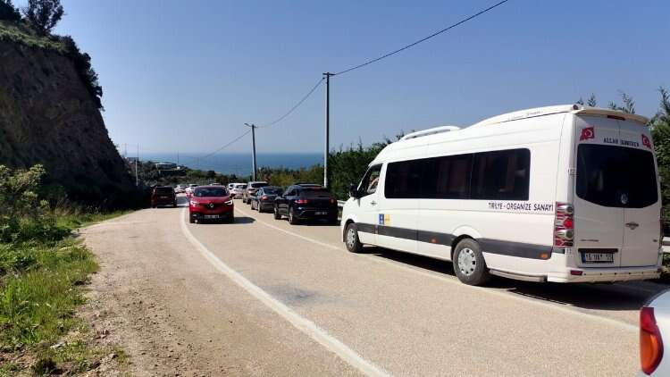 Havanın da güzel olması sebebiyle, sahilde adım atacak yer kalmadı. Trafikte kilometrelerce uzun kuyruklar oluştu.
