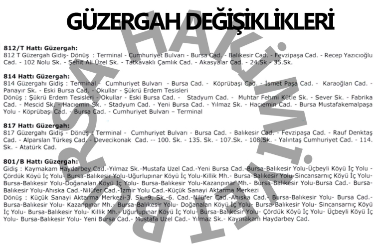 Bursa Büyükşehir Belediyesi Ulaşım Koordinasyon Merkezi (UKOME) Kurulu'nun, BURULAŞ'ın talebini onaylamasıyla 6 otobüs hattının güzergahı değişti. İşte detaylar...