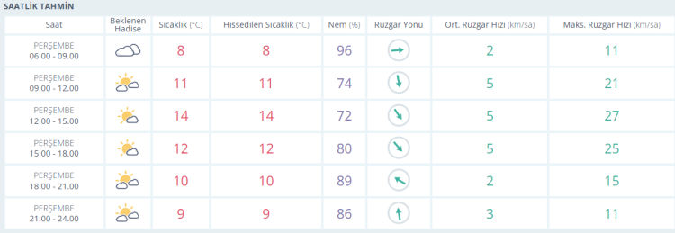 Kentte hava sıcaklığının gün içinde 14 dereceye kadar yükselmesi, akşam saatlerinde 10 dereceye, gece saatlerinde ise 9 derece civarına gerilemesi öngörülüyor.