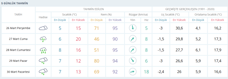 İŞTE BURSA İÇİN 5 GÜNLÜK HAVA DURUMU TAHMİNİ (26 MART 2026)
