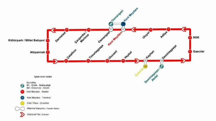 Bursa'da 16 durağı bulunan T1 Tramvay Hattı bakım ve onarım çalışmalarıyla nedeniyle hizmete ara verecek.