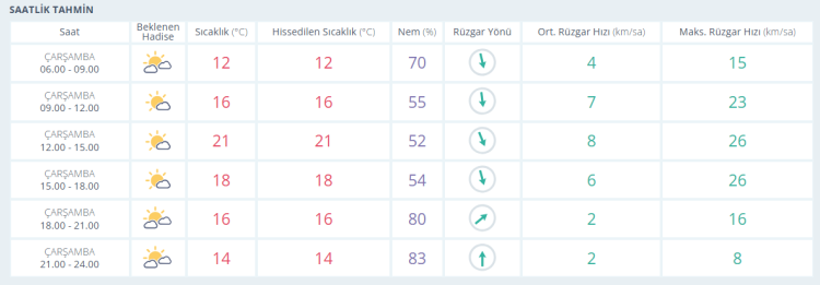 PERŞEMBE: Parçalı bulutlu, sıcaklık 21 derece