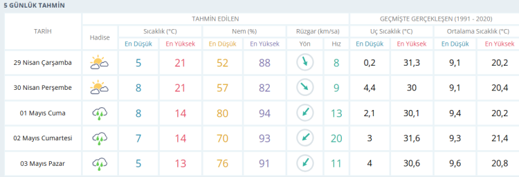 Sıcaklıkların öğle saatlerinde 21 dereceye kadar yükselmesi, akşam ve gece ise yaklaşık 15 dereceye düşmesi öngörülüyor.
